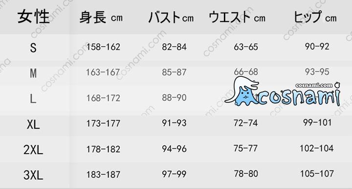 | 注意事項: | 1、本商品は上記の【セット内容】とおりです。道具、ウィッグと靴などが含まれておりませんのをご了承ください。 2、商品画像は明るさや光の反射、コンピュータースクリーン等で実物と多少の色合いが変わってみえることがございますがあしからずご了承ください。 3、計測に付きましては手測りとなりますので若干の誤差はご了承ください。 |